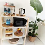 Ετοιμάστε ένα νόστιμο σπιτικό γεύμα χρησιμοποιώντας εξοπλισμένη μικρή κουζίνα που διαθέτει το διαμέρισμα Almarea Beach - Essenza Del Mare, Calore Di Casa.